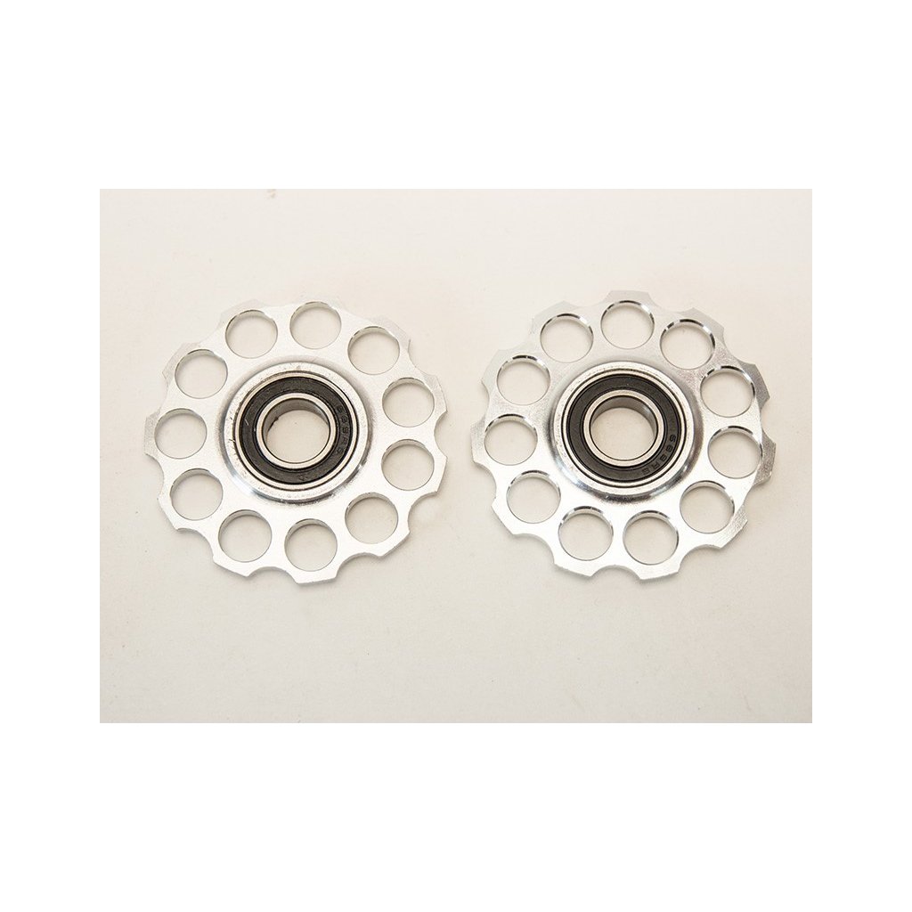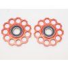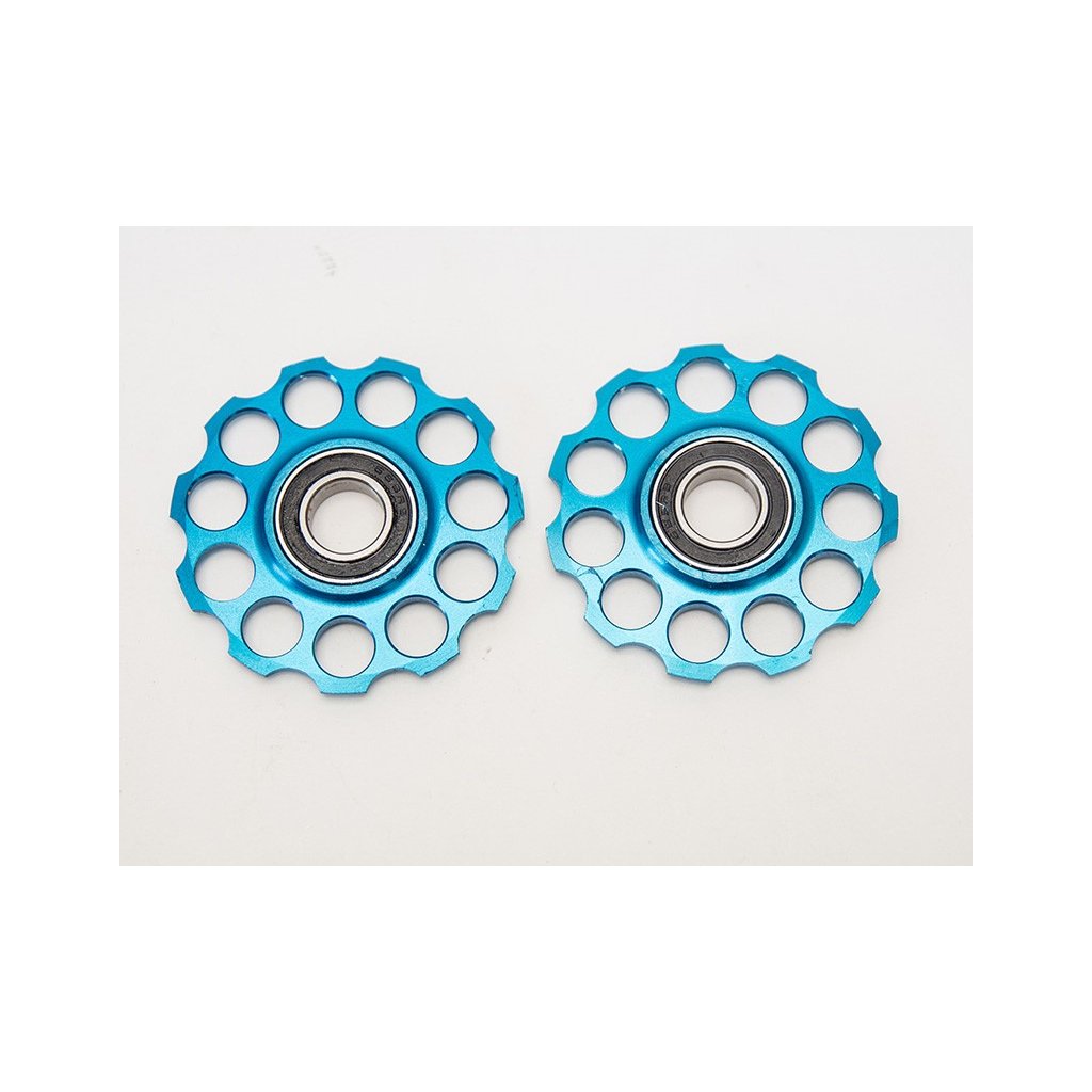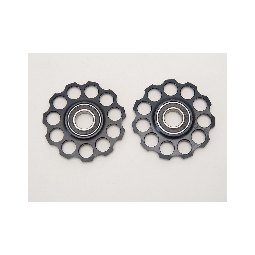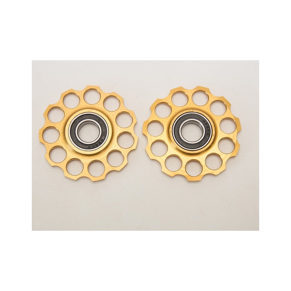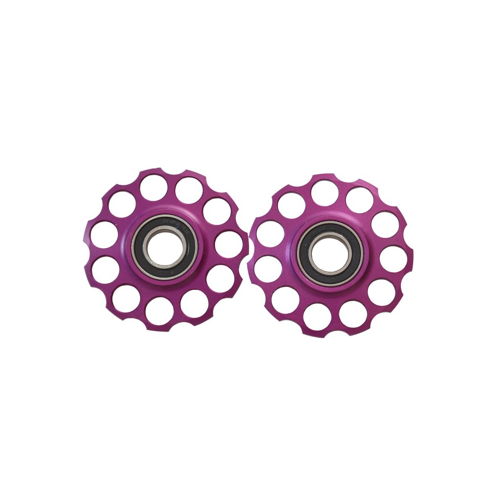 They are mainly used to improve shifting accuracy. They are compatible with the vast majority of derailleurs available on the market. They are produced in an 11-tooth design for 9- and 10- shifting systems. We produce pulleys in many colour versions. Colour: black, white, orange, red, gold, blue, green, silver and purple.